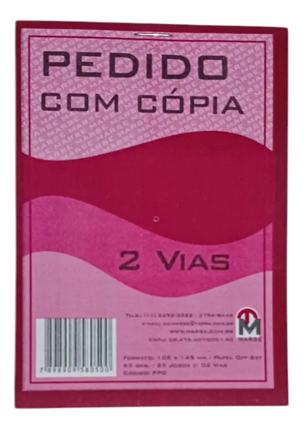 Pedido Com Cópia 2 vias 105x145mm 50 Folhas (25x2) Marse Com 5 Blocos